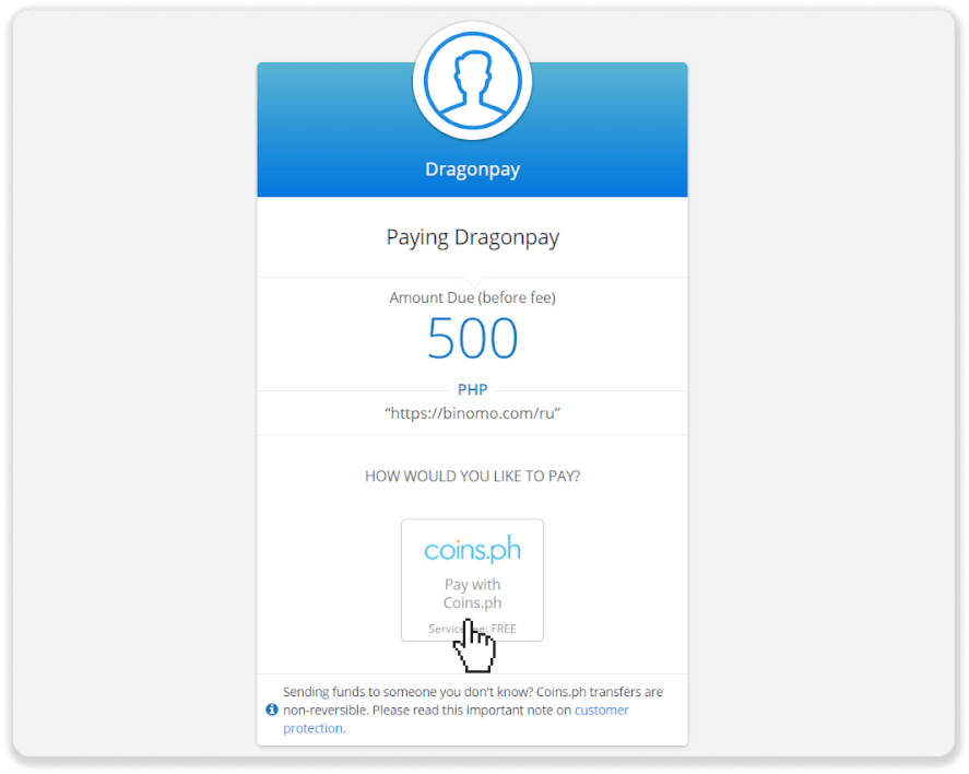 5. Kontrolloni nëse shuma është e saktë dhe klikoni “Pay with Coins.ph”.