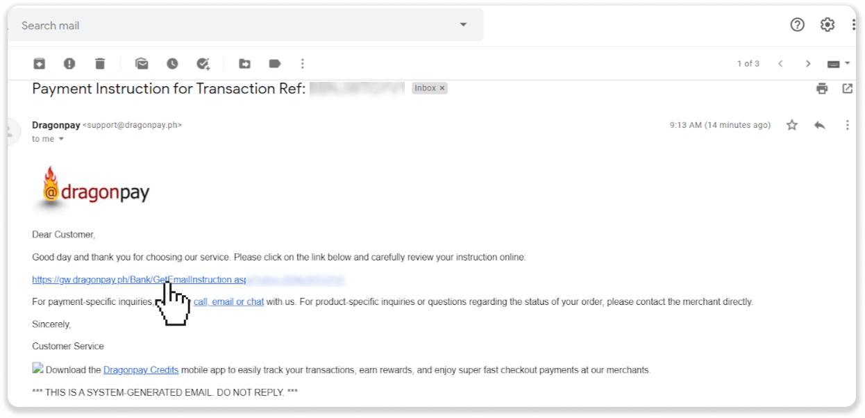 15. Për të konfirmuar pagesën tuaj, klikoni lidhjen në udhëzimet e pagesës nga Dragonpay.